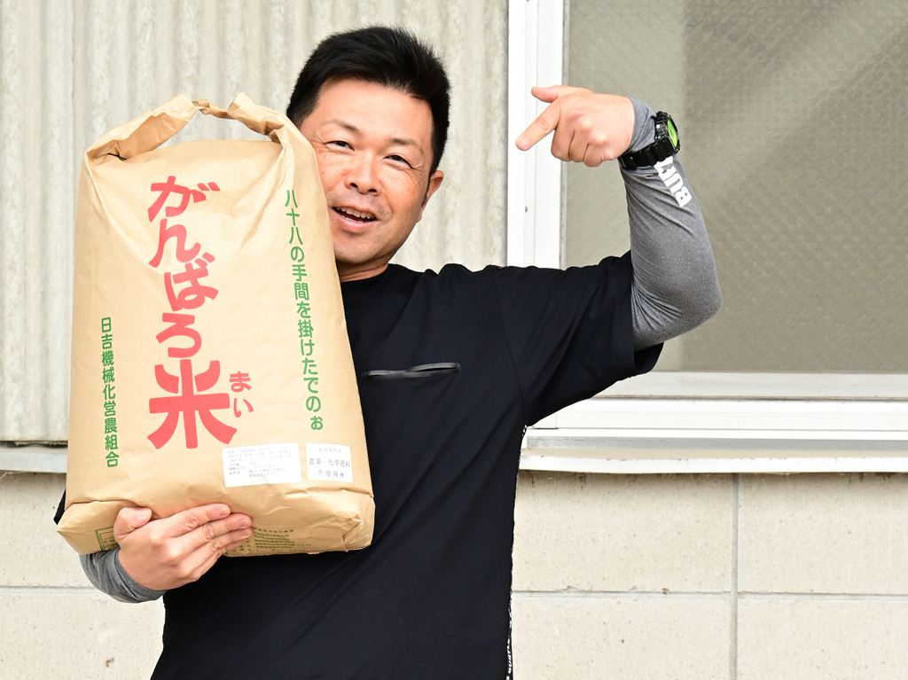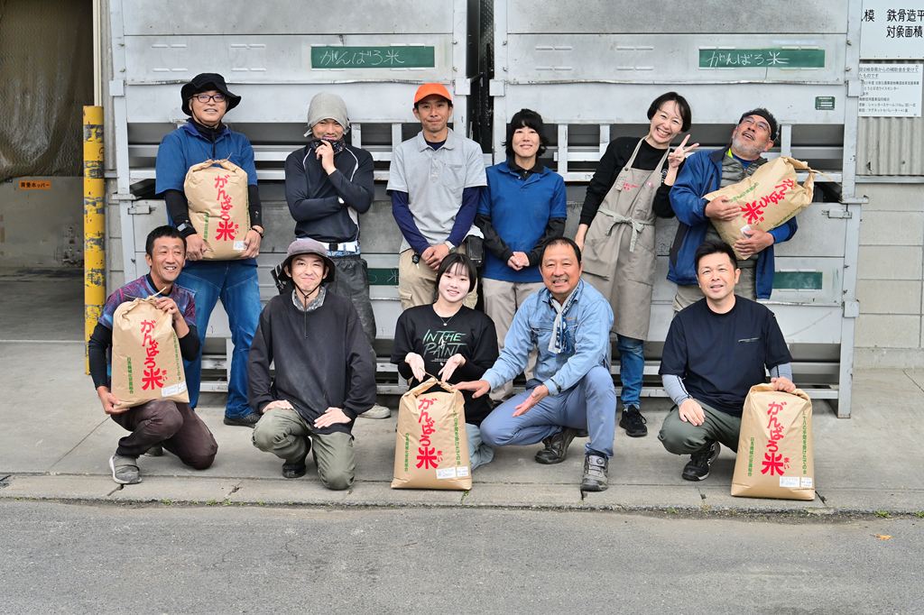 農業大学の学生さんも交え、日吉機械化営農組合チーム一丸となって「がんばろ米」をつくっています。