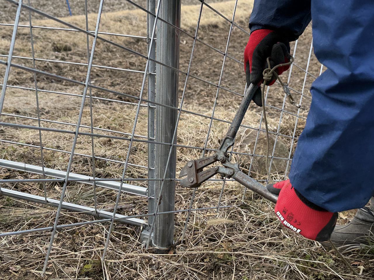 このような、鉄筋の格子状パネルを用いて、野生動物の侵入を防止します。